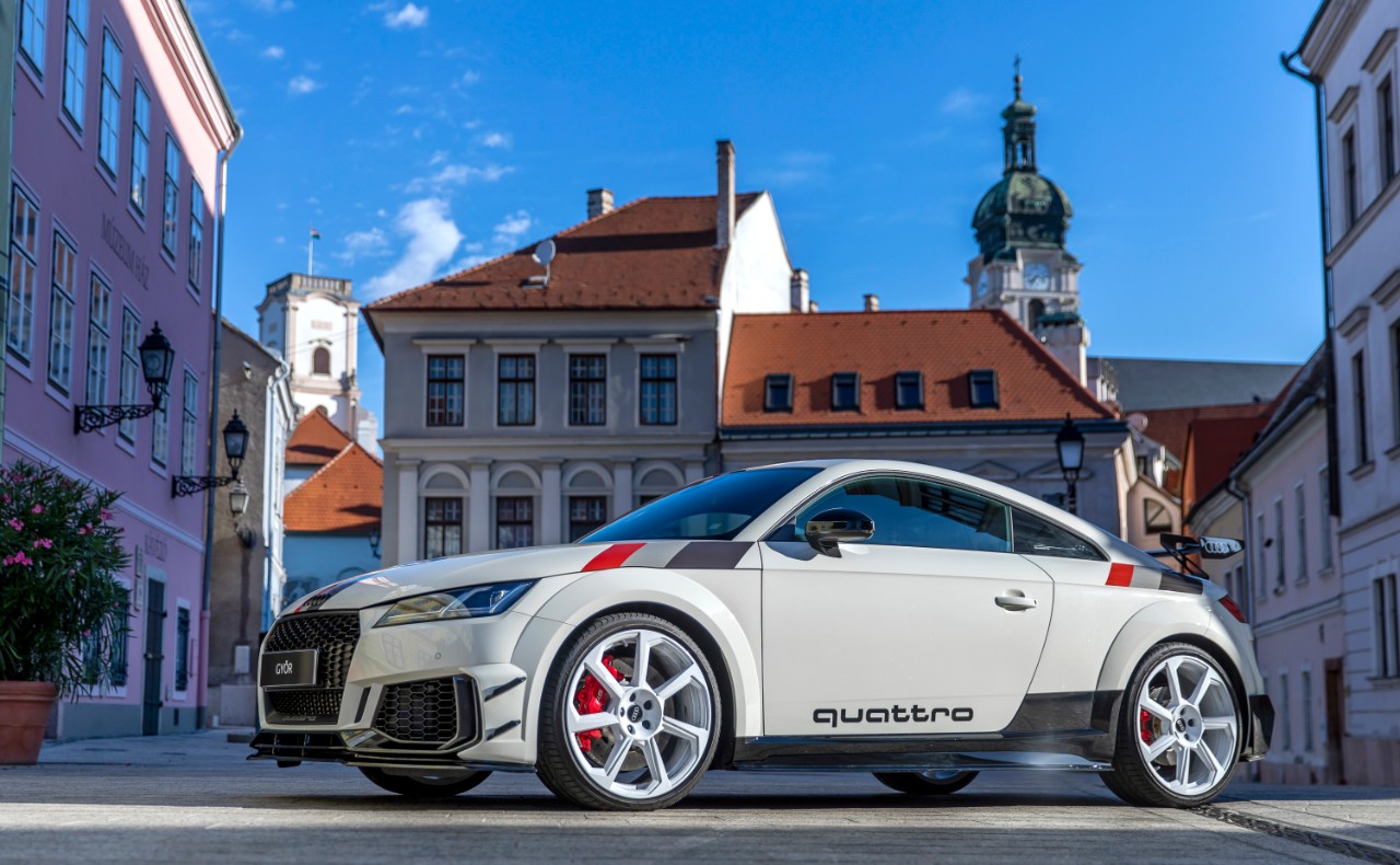 Als Audi das 40-jährige Jubiläum des quattro-Antriebs feierte, gab es als Sahnehäubchen eine Sonderedition vom Topmodell der TT-Baureihe. Der Audi TT RS 40 years quattro zelebriert die Erfolgsgeschichte des quattro-Antriebs auf spektakuläre Weise. Die auf 40 nummerierte Exemplare limitierte Sonderedition des TT RS war ein ganz besonderes Jubiläumsgeschenk, exklusiv für Fans in Deutschland. Zum Glück musste man dafür nicht nach Deutschland reisen – ein Ausstellungsstück war auch im Werk in Győr zu sehen.