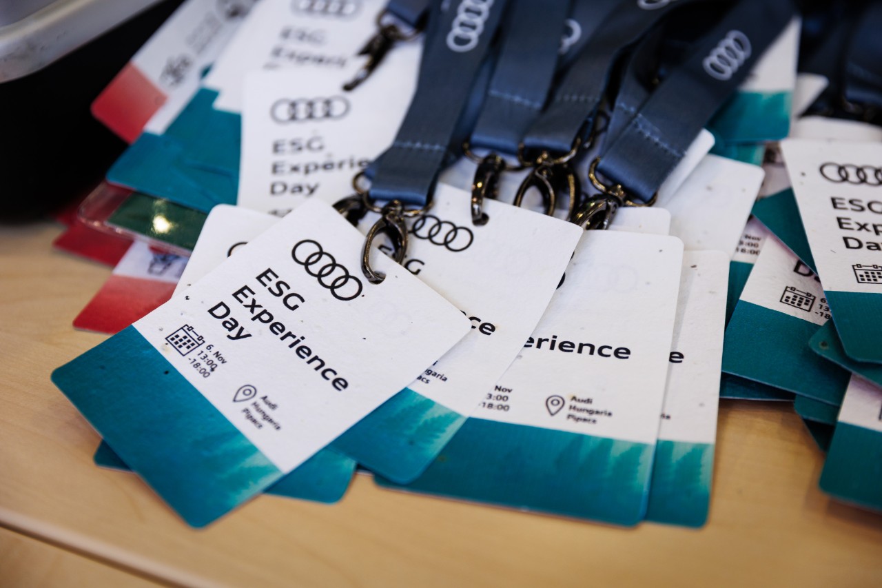 Innerhalb der Veranstaltung konnten sich die Teilnehmenden bei sogennanten ESG Space für interaktive Programme mit Audi Hungaria Expert_innen anmelden. Im ESG Space zu E konnten unsere Mitarbeitenden eine interaktive Führung anhand zahlreicher Exponate duch die vier Säulen der Umweltprogramms MISSION: Zero - Dekarbonisation, Wasser- und Ressourcenmanagement sowie biologische Vielfalt – durchlaufen, inklusive schmackhafte Audi-Honig-Verkostung. Im benachbarten Saal simulierten unsere Kollegen und Kolleginnen, wie schwer es ist, die relevanten ESG-Daten eines so großen Unternehmens zu finden, zu sammeln und dann zusammengefasst abzusenden. Wer Lust auf Kartenspiele hatte, konnte auch das bei dem Sensibilisierungstraining des AHAM-Programms (Audi Hungaria aktiv in der Arbeit) tun, zwar nicht mit immer fairen Spielregeln, was unseren Mitarbeitenden lehrte, wie wichtig eine offene Einstellung und Akzeptanz der Gemeinschaft sind.