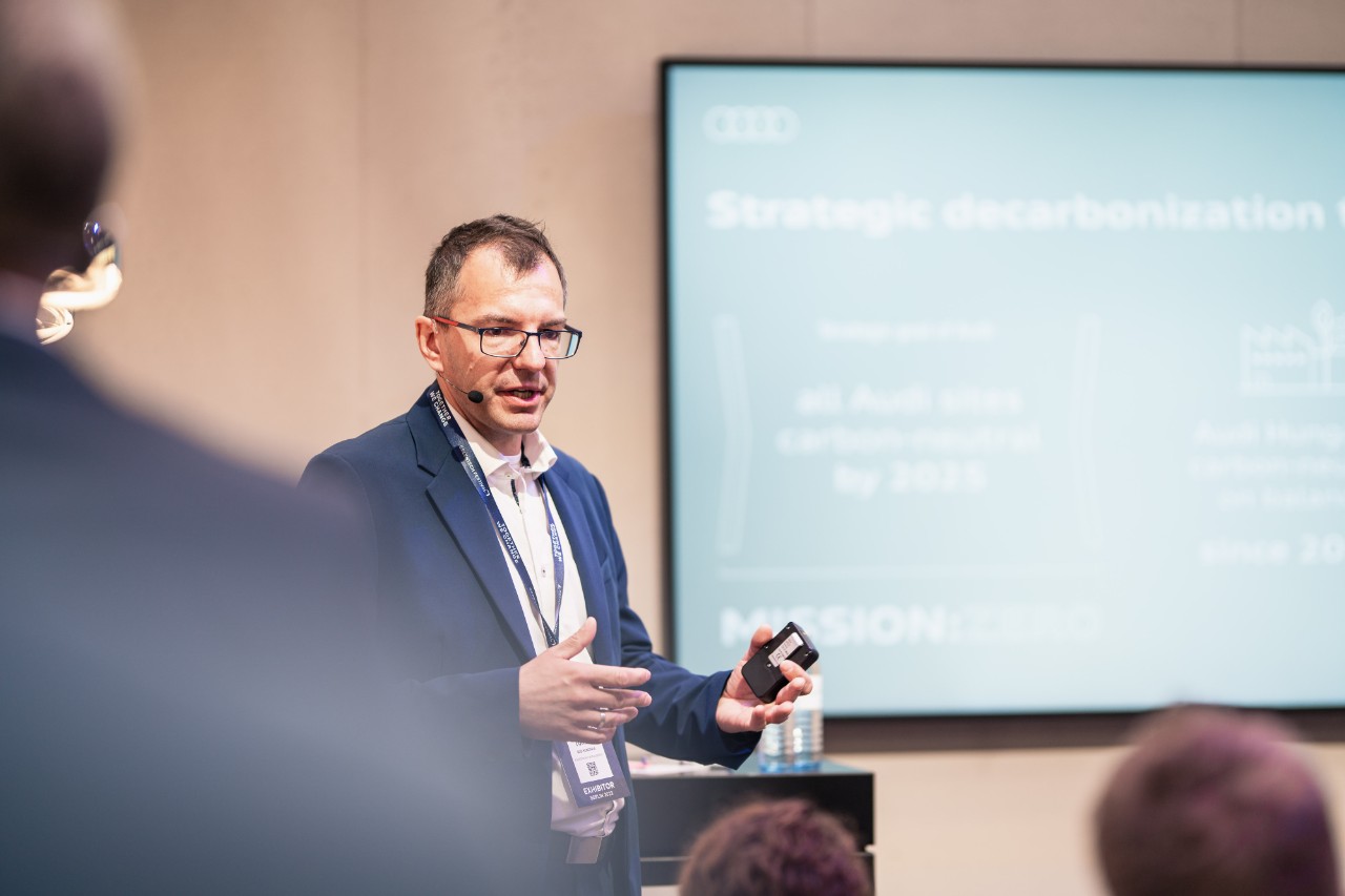 Unsere Marke war mit einem eigenen Stand auf dem Festival vertreten, an dem neben der Präsentation der wichtigsten Nachhaltigkeitsthemen auch Podiumsdiskussionen zu verschiedenen Themen stattfanden, darunter auch mein Vortrag Mission:Zero bei Audi Hungaria, in dem es um die Klimaneutralität unseres Unternehmens ging. Ich stellte die Maßnahmen vor, die wir in Győr ergriffen haben, um unseren CO2-Fußabdruck zu reduzieren, wie wir bis 2020 einen CO2-neutralen Betrieb erreichten, sowie die Ambitionen und zukünftigen Projekte, an denen wir arbeiten. Im Anschluss an meinen 20-minütigen Vortrag wurden mir eine Reihe ernsthafter Fragen technischer Natur gestellt. Die Teilnehmer interessierten sich unter anderem dafür, wie unsere Kohlenstoffneutralität überprüft wird und wie wir unsere Kollegen in unsere gemeinsame Arbeit einbeziehen.