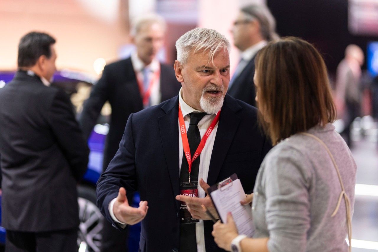 Der Prozess der Transformation ist auf unserem Stand zu sehen, der Beginn einer Zeitreise, die Gegenwart und die Zukunft. Wir haben die dritte Generation unseres ersten Fahrzeugs mitgebracht, die limitierte Jubiläumsausgabe des TT RS quattro, den fast alle Mitarbeitenden als Familienmitglied sehen und das R5-Aggregat, das den TT antreibt. Daneben steht der Q8 e-tron, dessen elektrischen CBEV-Antrieb wir ebenfalls herstellen.
