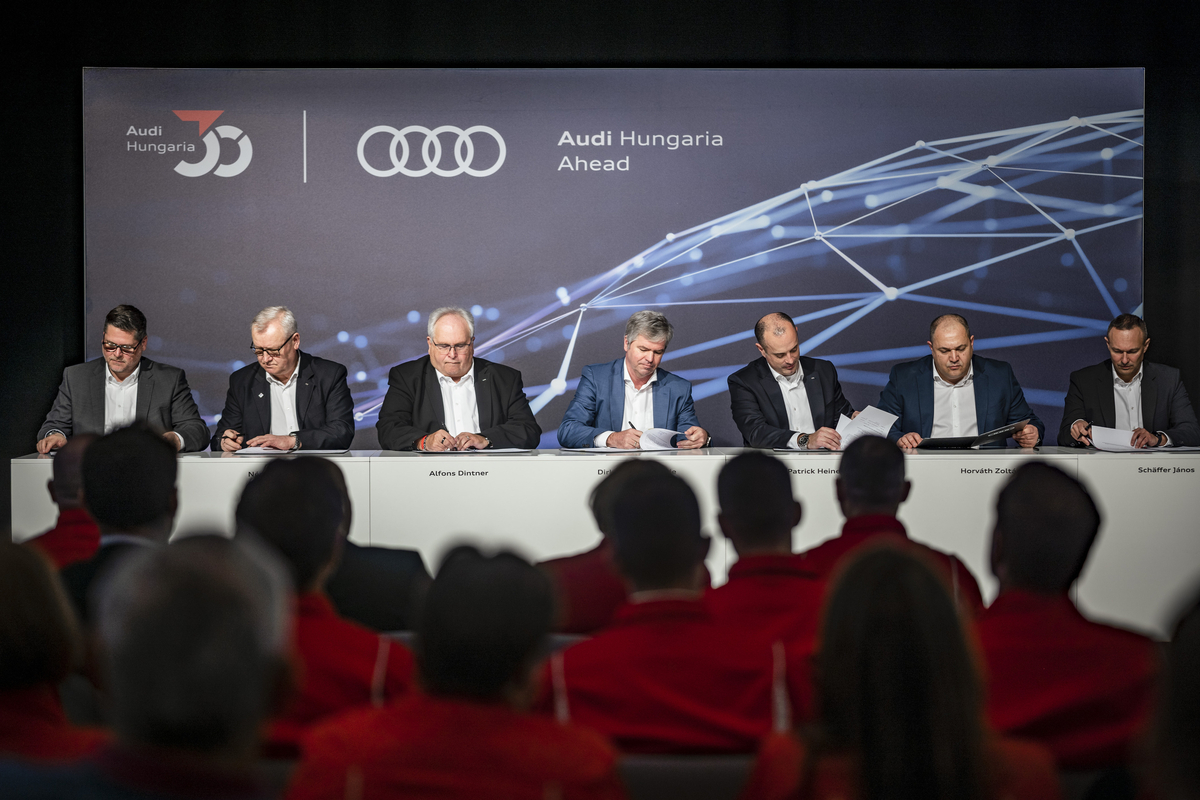 „Mit der Gründung der AUDI HUNGARIA AHEAD Kft. beginnen wir heute ein neues Kapitel der Erfolgsstory Audi Hungaria," sagt Dirk Große-Loheide, Vorstandsmitglied der AUDI AG für Beschaffung und IT. „Künftig kommen noch mehr Premium-Dienstleistungen für den gesamten Volkswagen Konzern aus Győr. Mit diesem Plus an Synergien stellen wir uns in der Transformation noch wettbewerbsfähiger auf. AUDI HUNGARIA AHEAD steht für Zukunftsorientierung, Innovation und Entwicklung, immer mit Fokus auf unsere Kundinnen und Kunden.“