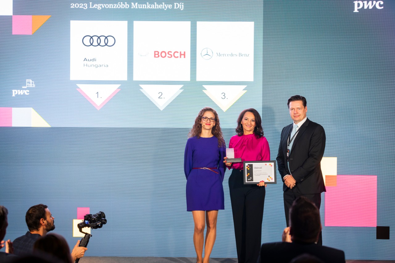 Győr, 2023. november 17. – Ismét az Audi Hungaria vehette át a Magyarország Legvonzóbb Munkahelye díjat, melyet az összesített mezőnyben és az autóiparági munkáltató kate...