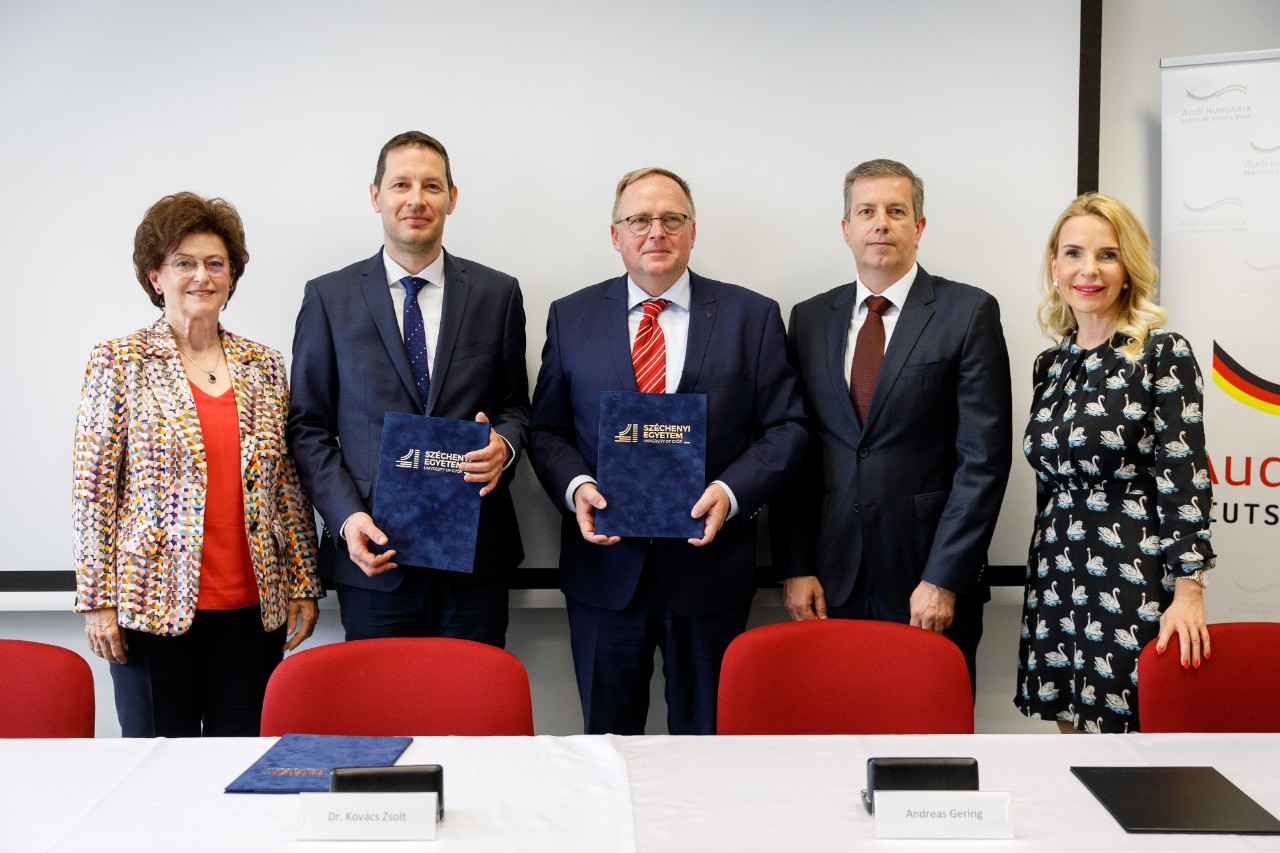 „A Széchenyi István Egyetem nagy hangsúlyt fektet a nemzetközi színvonalú oktatásra, kutatásra, valamint arra, hogy harmadik missziós tevékenységével hozzájáruljon a térség gazdaságának fejlődéséhez. Mindez fontos szempont együttműködéseink kialakításában is. Az AUDI HUNGARIA Zrt. első számú partnere intézményünknek, és ez mindhárom említett területen markánsan megmutatkozik. Az Audi Hungaria Iskolaközponttal is kitűnő a kapcsolatunk, mostani megállapodásunk pedig szélesebbre tárja a felsőoktatásba vezető kaput az iskola diákjainak” – fogalmazott dr. Kovács Zsolt, a Széchenyi István Egyetem általános és oktatási elnökhelyettese.