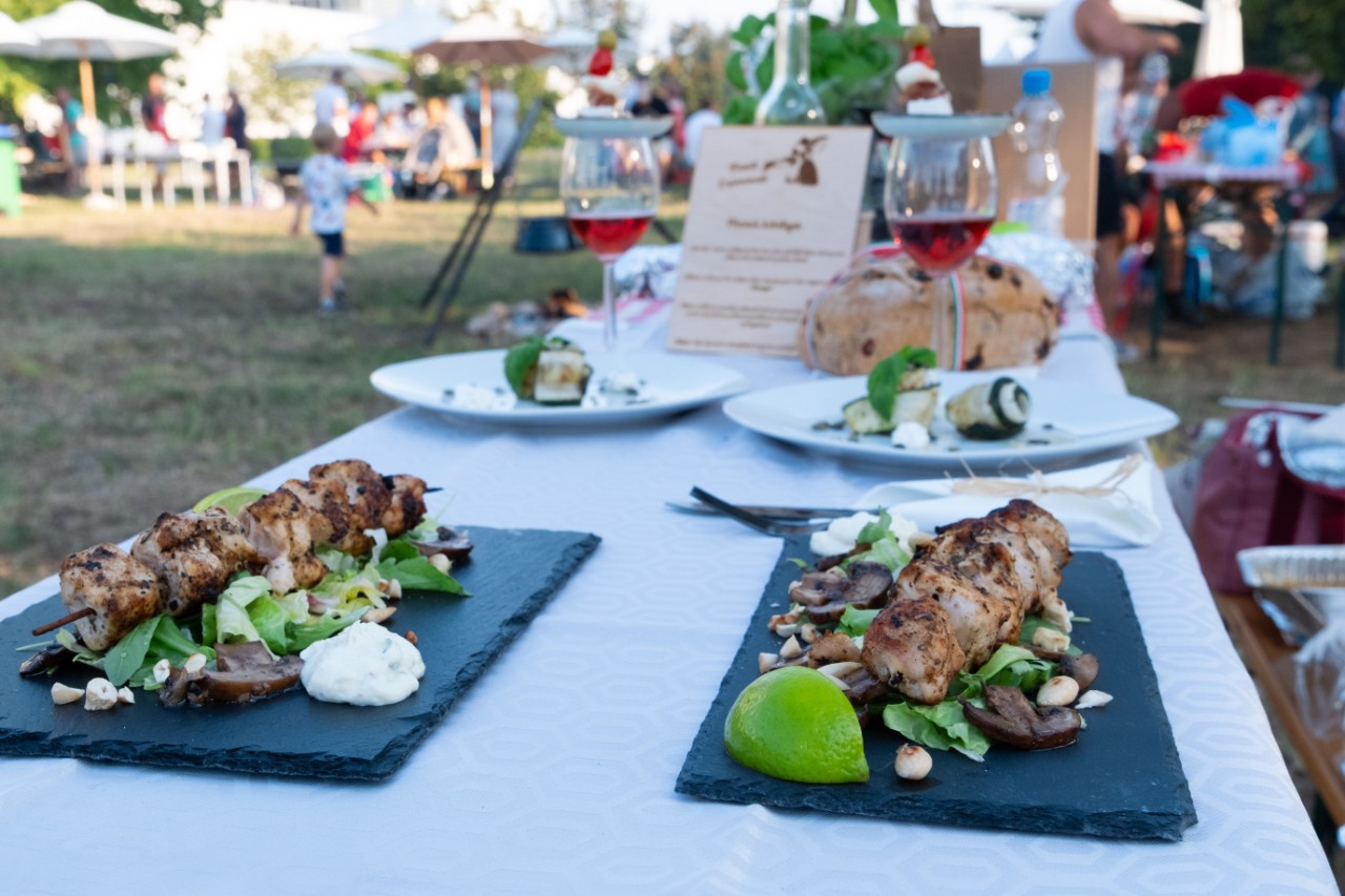 Vincze-Pellissier Kata avatott be minket a siker titkába, és elmondta, hogy ahogy tavaly, úgy idén is azért indultak a külön kategóriában, hogy megmutathassák kreativitásukat, aminek idén egy teljes mértékben helyi alapanyagokból készült spanyol menüsor lett az ízletes eredménye. A zöldségeket, gyümölcsöket a családi veteményesekből, magaságyásokból, a grillen készített nyúlhúst pedig egy kisbéri tenyésztőtől hozták. Előételnek nyers zöldségekből készült ízes gazpachot, azaz spanyol zöldséglevest választottak, míg a főétel fokhagymás nyúl lett spanyol burgonyával, grillezett újhagymával, padrón paprikával, aioli fokhagymás és katalán ízvilágú romesco szószokkal. Desszertként kertük gyümölcseit grillezték termelői mézzel, fahéjjal, otthon készített fagylalttal tálalva.